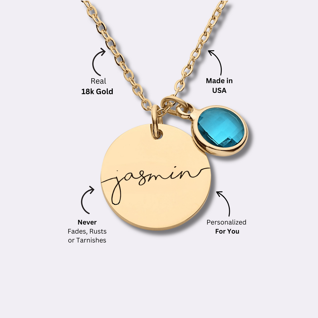 This beautiful necklace, which has a long chain and a personal touch, is perfect for any woman. This birthstone round name pendant of your choice is attached to the center of the name, giving it a beautiful sparkly effect! This necklace would make an excellent gift for Christmas, Thanksgiving, anniversaries, birthdays, Mother's Day.